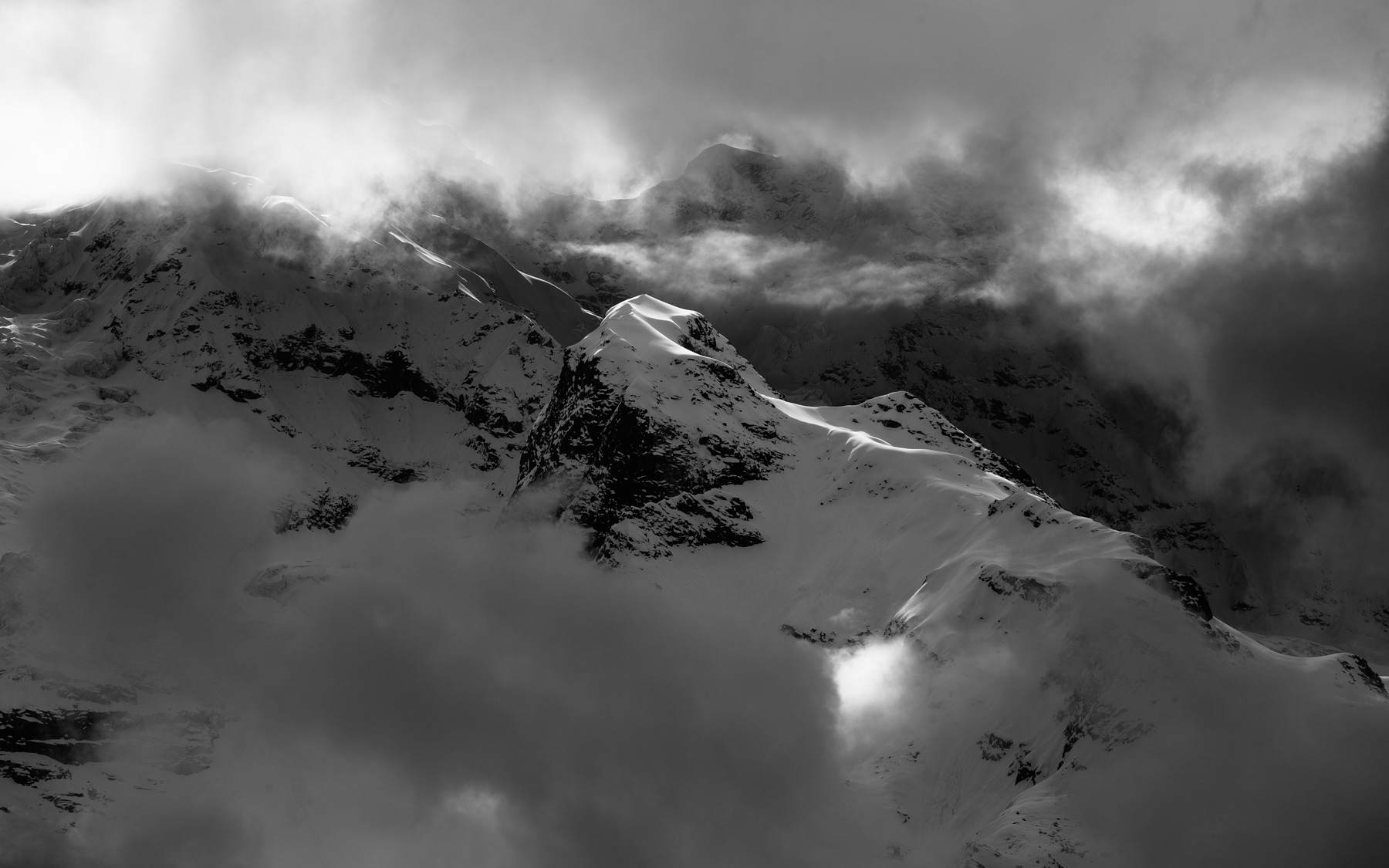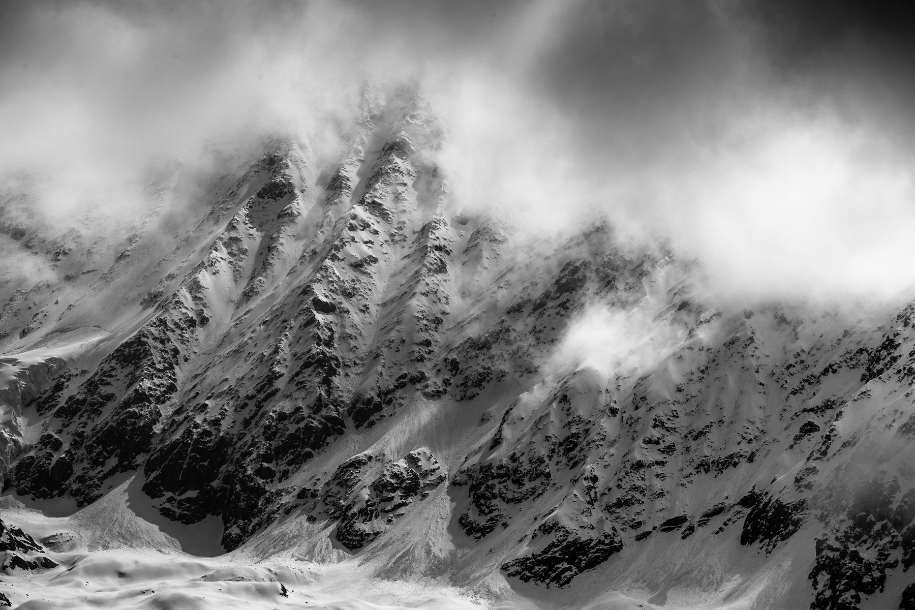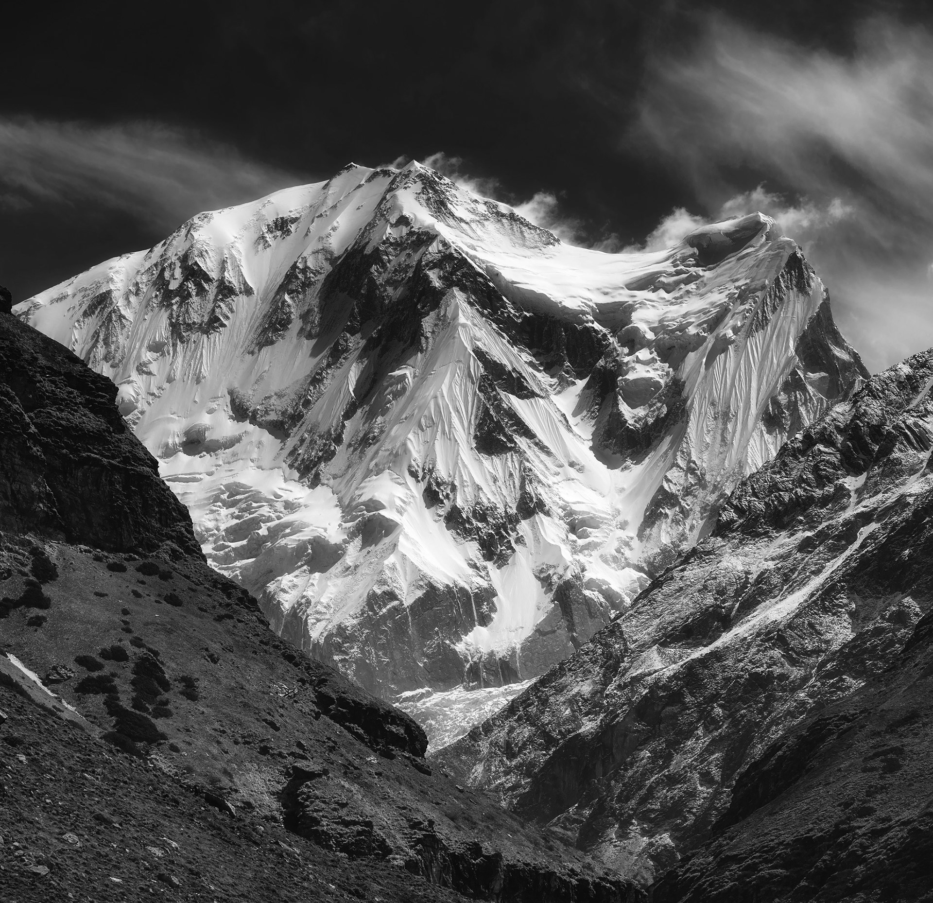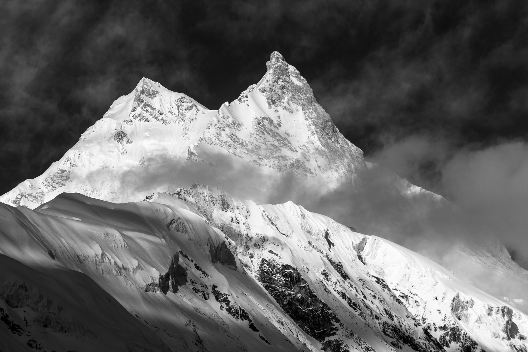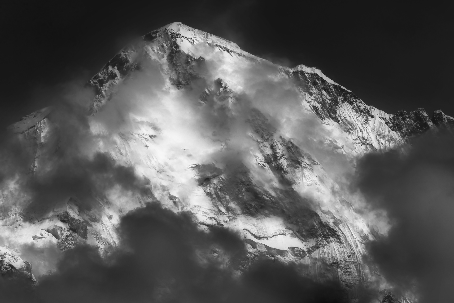 Cloud shadows on the slopes of mountain Manaslu, Nepal, Manaslu Conservation Area